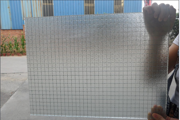 夾絲玻璃別稱防碎玻璃。它是將普通平板玻璃加熱到紅熱軟化狀態時,再將預熱處理過的鐵絲或鐵絲網壓入玻璃中間而制成。它的特性是防火性優越,可遮擋火焰,高溫燃燒時不炸裂,破碎時不會造成碎片傷人。另外還有防盜性能,玻璃割破還有鐵絲網阻擋。主要用于屋頂天窗、陽臺窗。